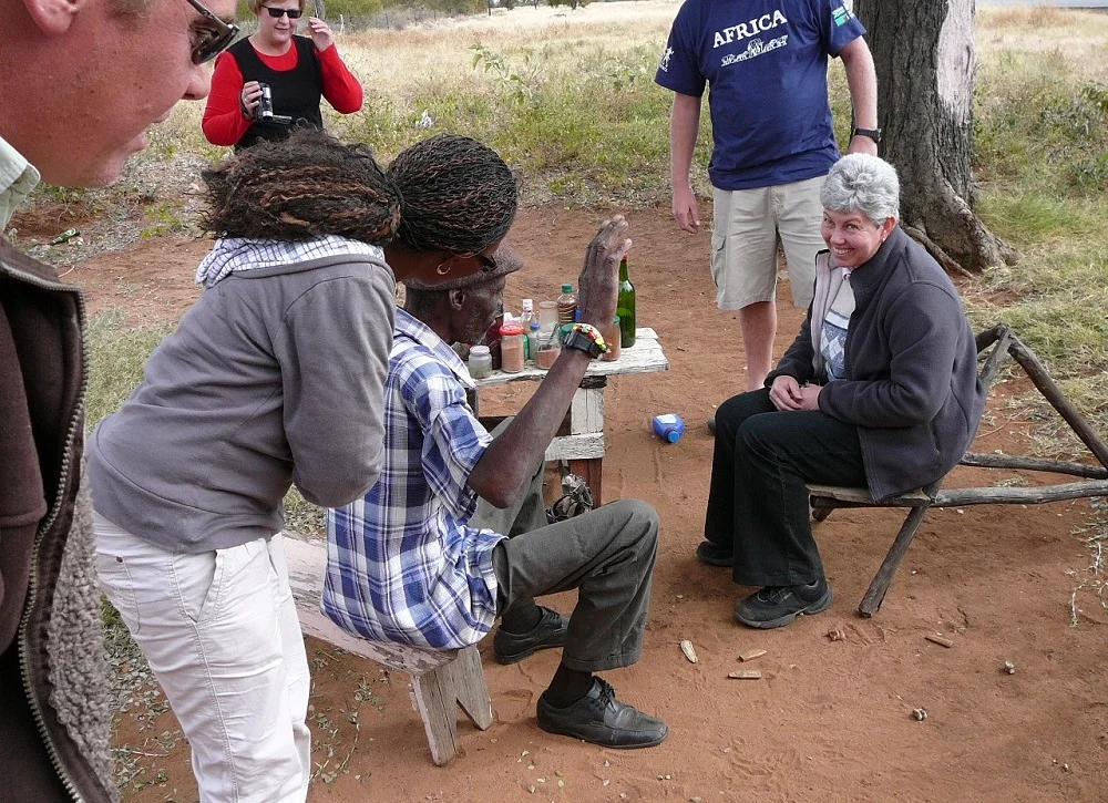They asked for a volunteer to sit in front of the Sangoma, otherwise known as a traditional healer, and listen to his prediction. No-one came forward so of course I took it upon myself to be the representative of our group and plonked myself down on a chair shaped like a wheelbarrow. My Sangoma started his ritual, spoke to his ancestors and tossed his divining objects onto the parched Kalahari sand. “Water. Vast expanses of water and countless animals.” Would his predictions be correct? We all chuckled afterwards at this display, but I’m so glad I didn’t have to drink any of the muti!