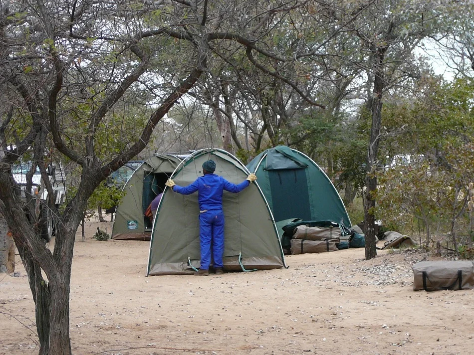 We travelled on our own to Botswana and stayed in permanent tents at Camp Itumela, Palapye. Our bed was a concrete slab with a comfortable mattress. The bedding was adequate and warm, thankfully, being July, it was freezing.