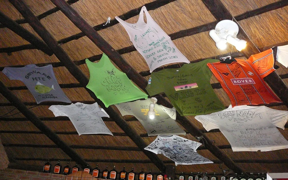 T-shirts in the bar at Camp Itumela, Palapye