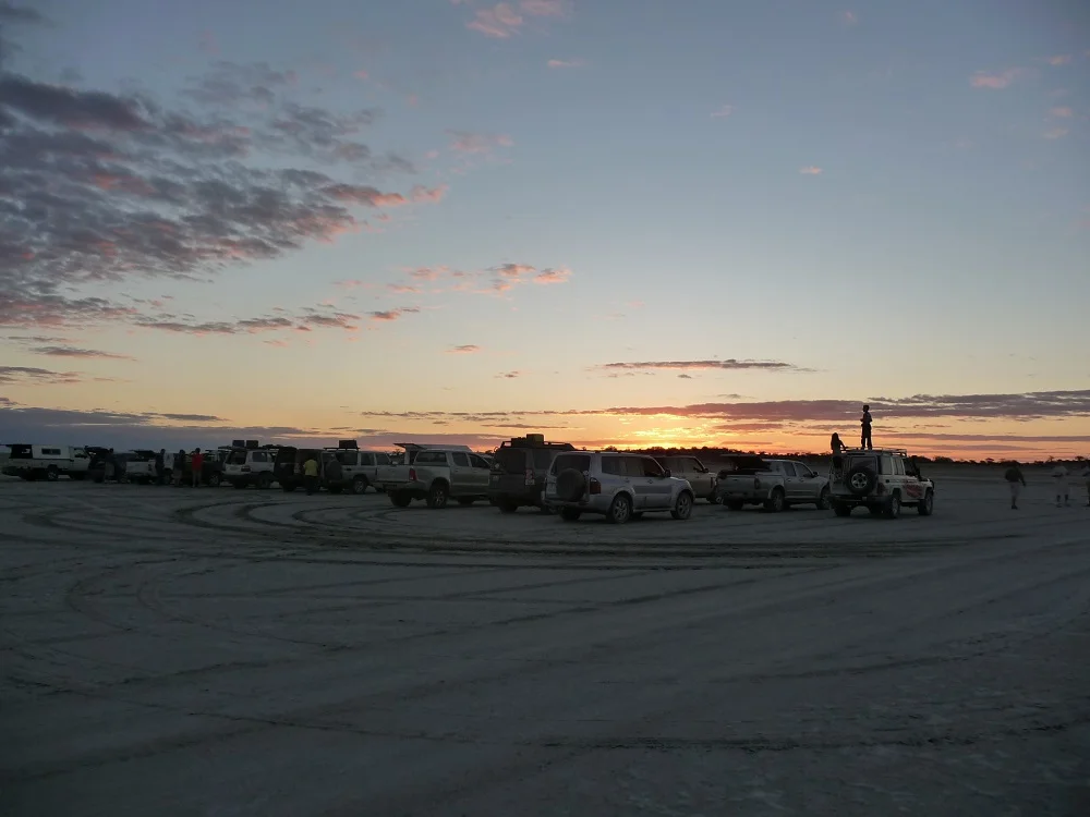 The convoy moved on and we left the tar to drive on a sandy road very similar to beach sand – except we were in a landlocked country. The track continued between trees till a gap between the bushes gave us a peep of the enormous salt pan.