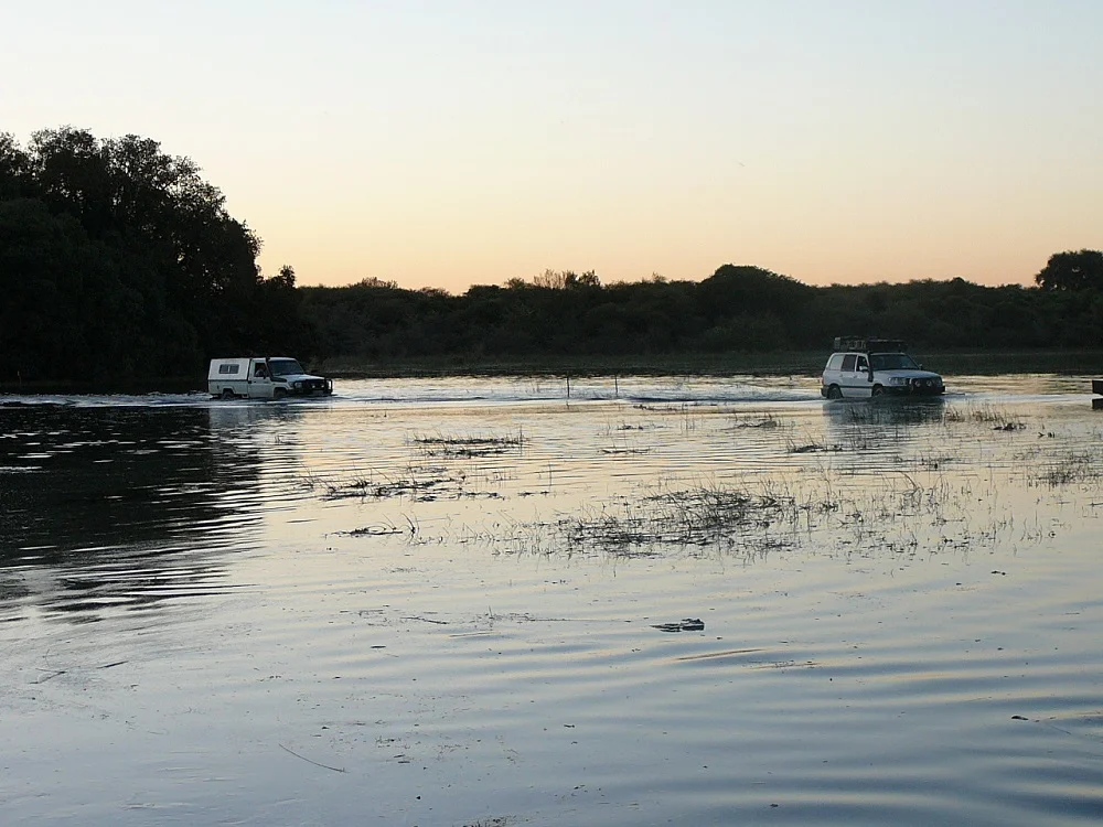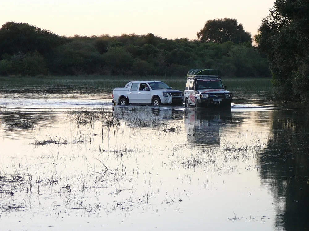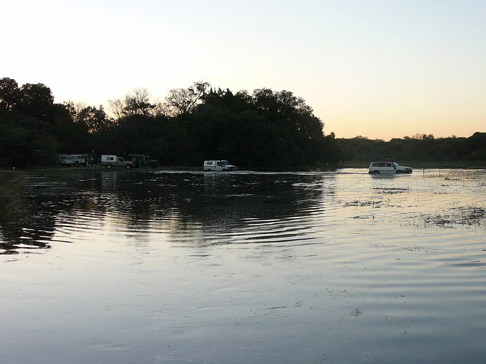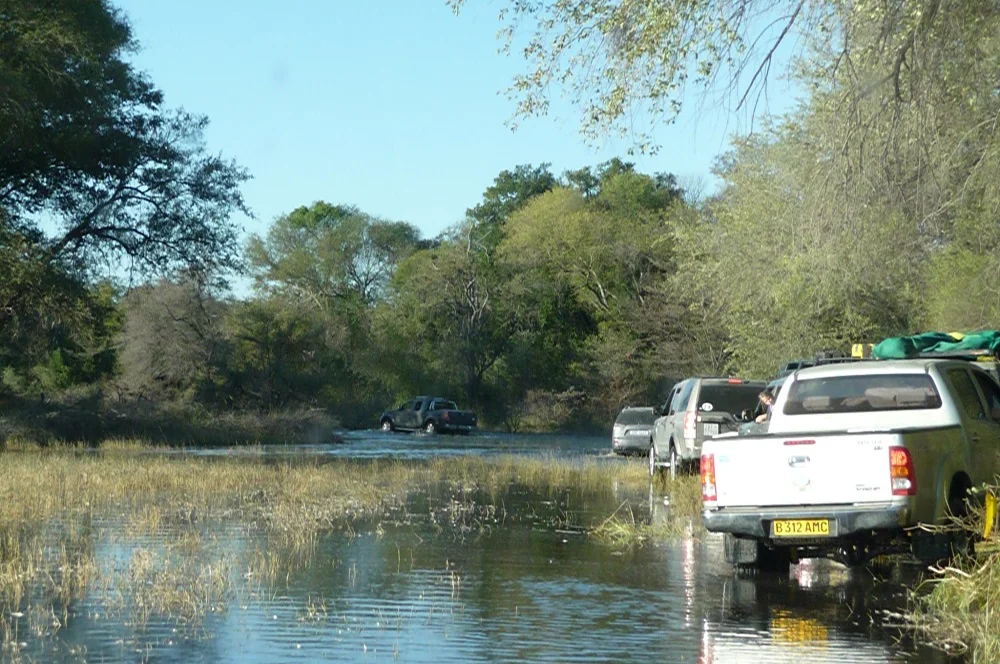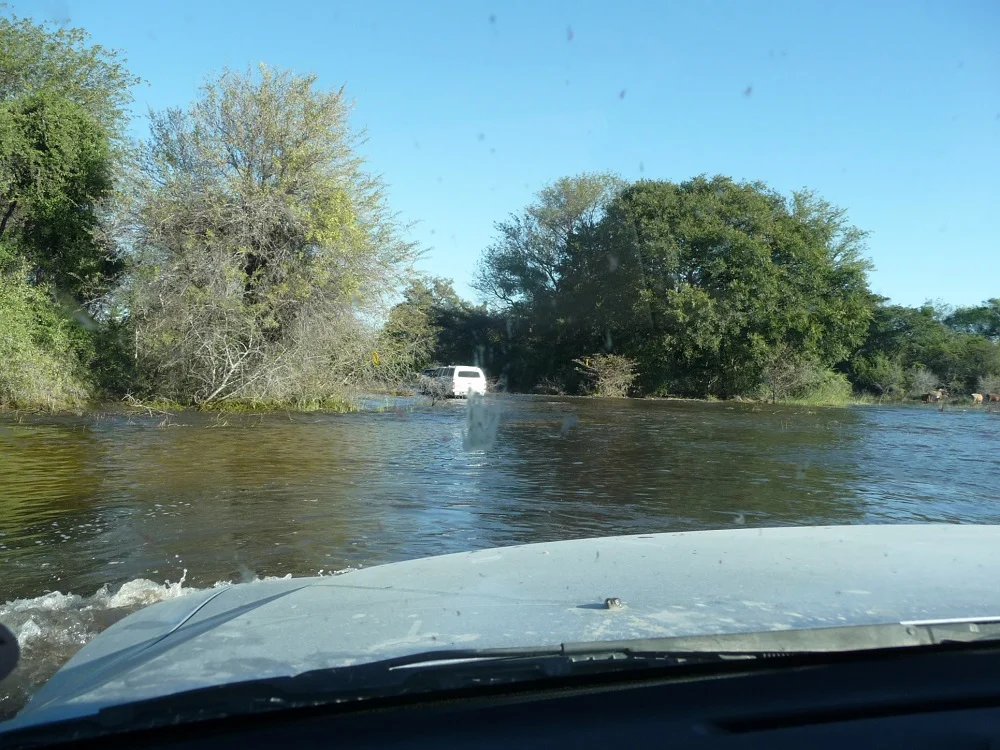 We were given a briefing about water-crossings before we headed into the Okavango. We would have to drive through some water to get to our destination. There was general enthusiasm mixed with just a touch of anxiousness. We didn’t know what was waiting for us, but there had been more rain than usual and the flood levels were rather high. We’d been assured the water crossing would at most only be as high as our wheel arch. I think that’s high enough!